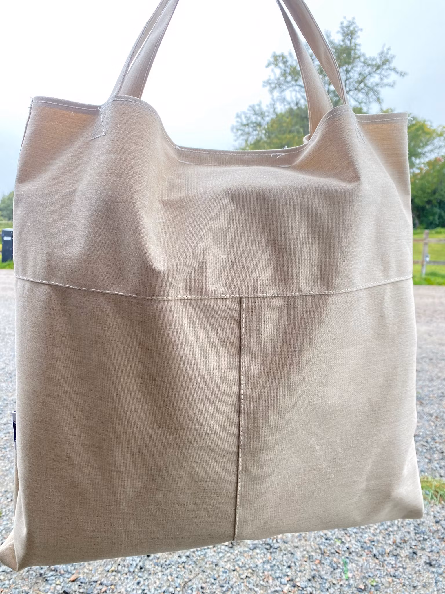 Vattentäta väskor tillverkade av spilltyg från kapellproduktion. Vi vill med dessa produkter minska svinnet av obrukbart material och bidra med en klimatsmart och hållbar produkt. Eftersom tyget är både slitstarkt och vattentät håller tyget i minst 10år i utomhus miljö.